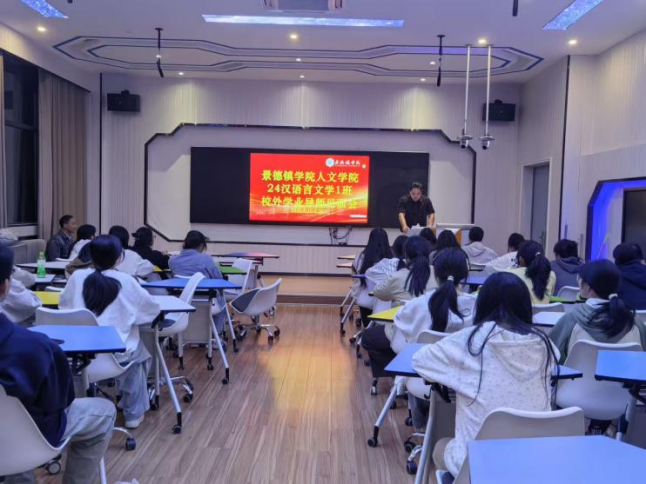 (本网讯:文|图刘灿灿)为充分发挥党组织的思想引领作用,创新育人模式,10月20日,景德镇学院人文学院24汉语言文学1班校外学业导师见面会在该院203教室举行。2024级汉语言文学1班全体学生参会,辅导员黄穗卿主持会议。
