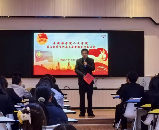 (本网讯:文│盛遵蓉/图│李慧媛)11月12日,人文学院第七届学生代表大会暨团员代表大会在人文学院207教室隆重举行。人文学院党委书记江旺龙、副书记万雪平、学生科科长兼团委书记周翠、全体辅导员及部分学生代表参会。