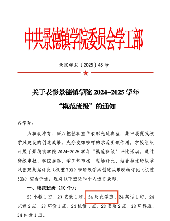 (本网讯:文|张鑫萍图|李慧媛)近日,校级“模范班级”评选结果揭晓,2024级历史班凭借多方面突出表现斩获此项殊荣,成为全校班级建设的优秀典范。