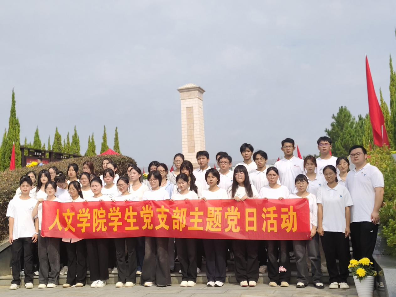(本网讯:文|图章慧珍)9月30日上午,人文学院师生代表前往浮梁县革命烈士陵园,开展了一次“缅怀先烈,传承红色基因”主题党日活动。人文学院团委书记兼学生科长周翠、院学生党支部书记刘光华带领学生党员、入党积极分子及学生代表参加,此次活动由学生会主席吴曦宸主持。