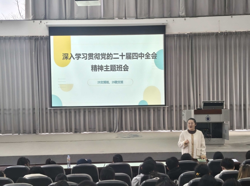 (本网讯:文|李慧媛图|盛遵蓉)12月2日下午,为深入学习贯彻党的二十届四中全会精神,25文博班与数文班联合举办主题班会。班会由辅导员陈凌燕主持,25文博班、数文班全体学生参加。