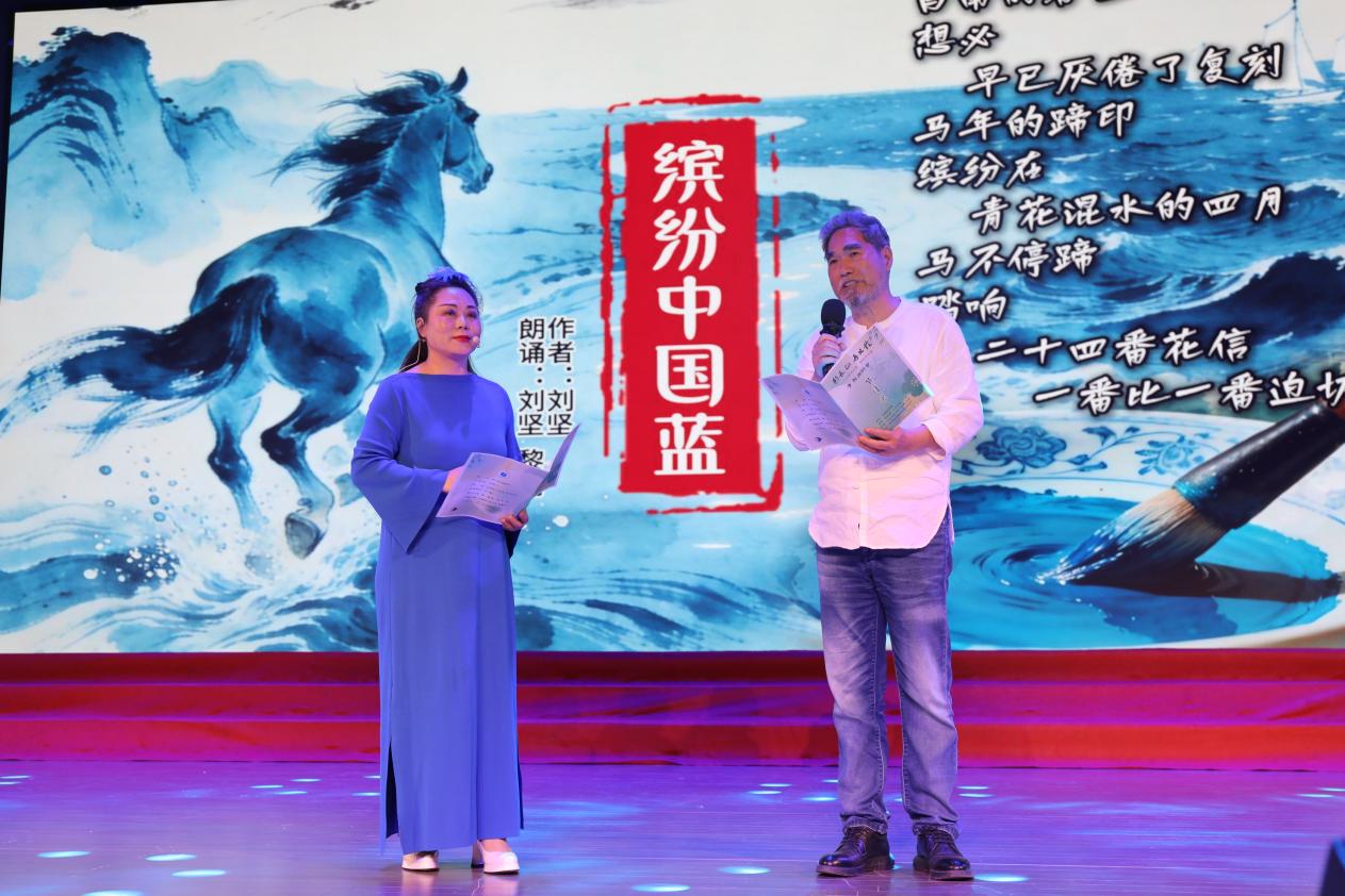 诗会在四大篇章层层递进,将红色基因、陶瓷文化与中华优秀传统文化深度融合,更创意融入AI赋能环节,用诗歌诵读、情景演绎、汉服走秀及创新演绎等多元形式,让经典与时代同频共振。开篇“瓷润谷雨·春和景明”,合诵《瓷韵书香青花蓝》、独诵《我是景德镇》与汉服秀相映成趣,将瓷都千年匠心与谷雨生机藏于视听之间,尽展东方美学之韵;“赤心长歌·文脉相传”篇章中,《永远的九岁》《延安的光》等节目回望革命征程,让信仰之光直抵人心。“和韵流芳·声耀山河”与“思绪奔涌·听风叙唱”两大篇章接续发力,革命家书诵读重温烽火岁月的家国深情,《土地的誓言》《新长征路上的赣鄱回响》抒发青年担当,书法与诵读《书诵·长征》则以笔墨与声音再现长征史诗,青花与诗韵相融、经典与创新碰撞,每一个节目都饱含赤诚与热爱。诗会创意节目《AI赋能诗词》更是打破传统演绎边界,以科技为翼,让千年诗词在智能演绎中焕发别样新生,成为诗会的一大亮点。