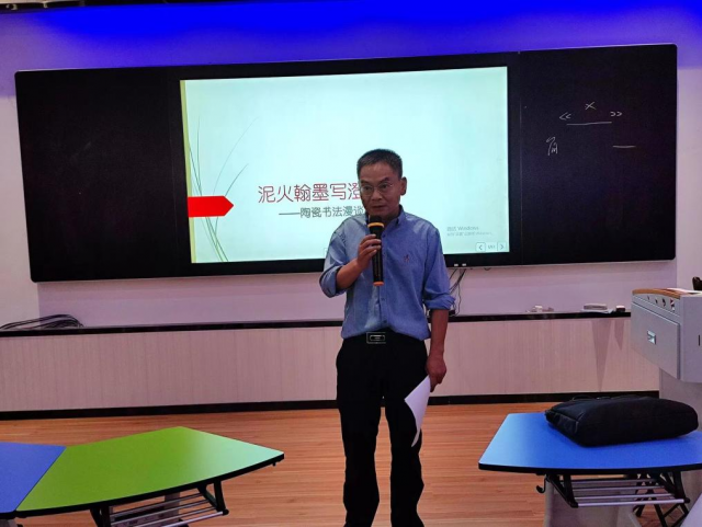 (本网讯:文|图洪毓鸿)为提高学生的艺术文化素养,传承传统文化精华,深入了解陶瓷书法艺术,人文学院于6月7日下午在文创中心举办了以“泥火翰墨写澄怀”为主题的陶瓷书法漫谈讲座。本次讲座邀请了中国书法家协会会员、江西省书法家协会副主席兼陶瓷专业委员会主任、景德镇市书法家协会主席、江西省非物质文化遗产传承人、江西省陶瓷艺术大师汪开潮副教授作为主讲嘉宾,人文学院党委书记戴强主持。