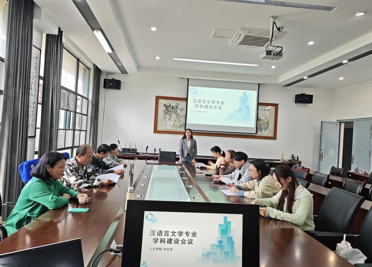 (本网讯:文|图人文轩)4月17日,人文学院在105会议室召开汉语言文学专业学科建设会议。会议围绕专业课程体系优化、特色方向建设及人才培养方案修订等议题展开深入研讨。